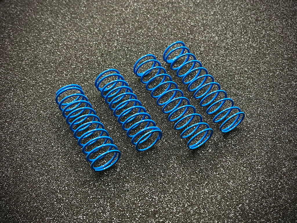 These reproduction Losi front and rear springs are just like our popular blue front and pink rear reproduction springs, but both front and rear have been powder coated blue just like what would have been found on the XX Kinwald Edition and other special spec versions.